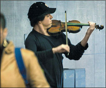 Tan sólo una mujer le reconoció. Stacy Fukuyama, que trabaja en el Departamento de Comercio, llegó casi al final de su actuación. No lo dudó ni un segundo: el que tocaba el violín no era ningún artista callejero. Le había visto hacía tres semanas en un concierto en la Biblioteca del Congreso. Y se quedó mirando, atónita, hasta que la última nota salió del Stradivarius.